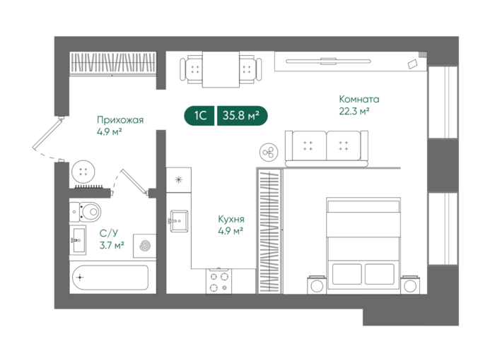 Студия 35,8 кв.м